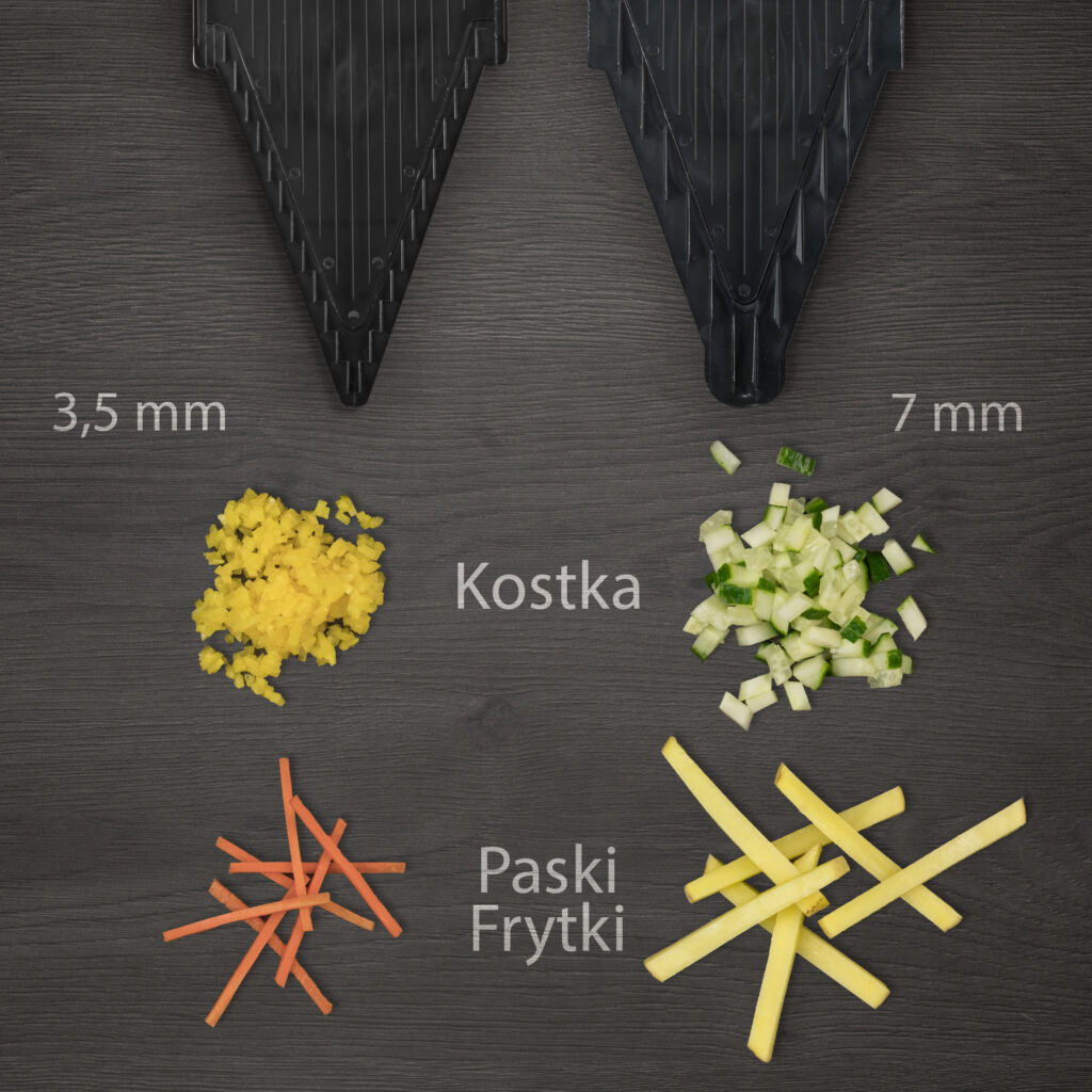 - Wkładka z nożami 7 mm – do cięcia w kostkę i frytki